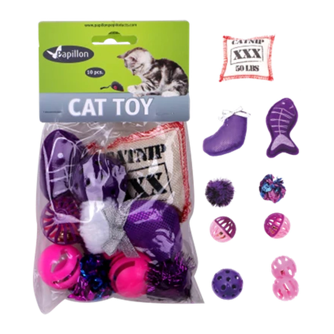 CT Canvas balls d9 cm and matatabi sticks with feathers (24pcs display)